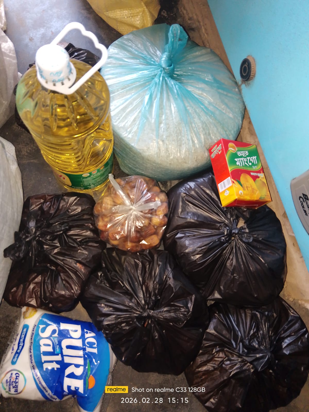 ইফতার প্যাকেট বিতরণ, খেজুর ও ঈদের সামগ্রী আয়োজন। ছোট পরিসরে দেওয়া হলেও, আন্তরিকতার সাথে পৌছে দেওয়া হয় সবার হাতে হাতে।